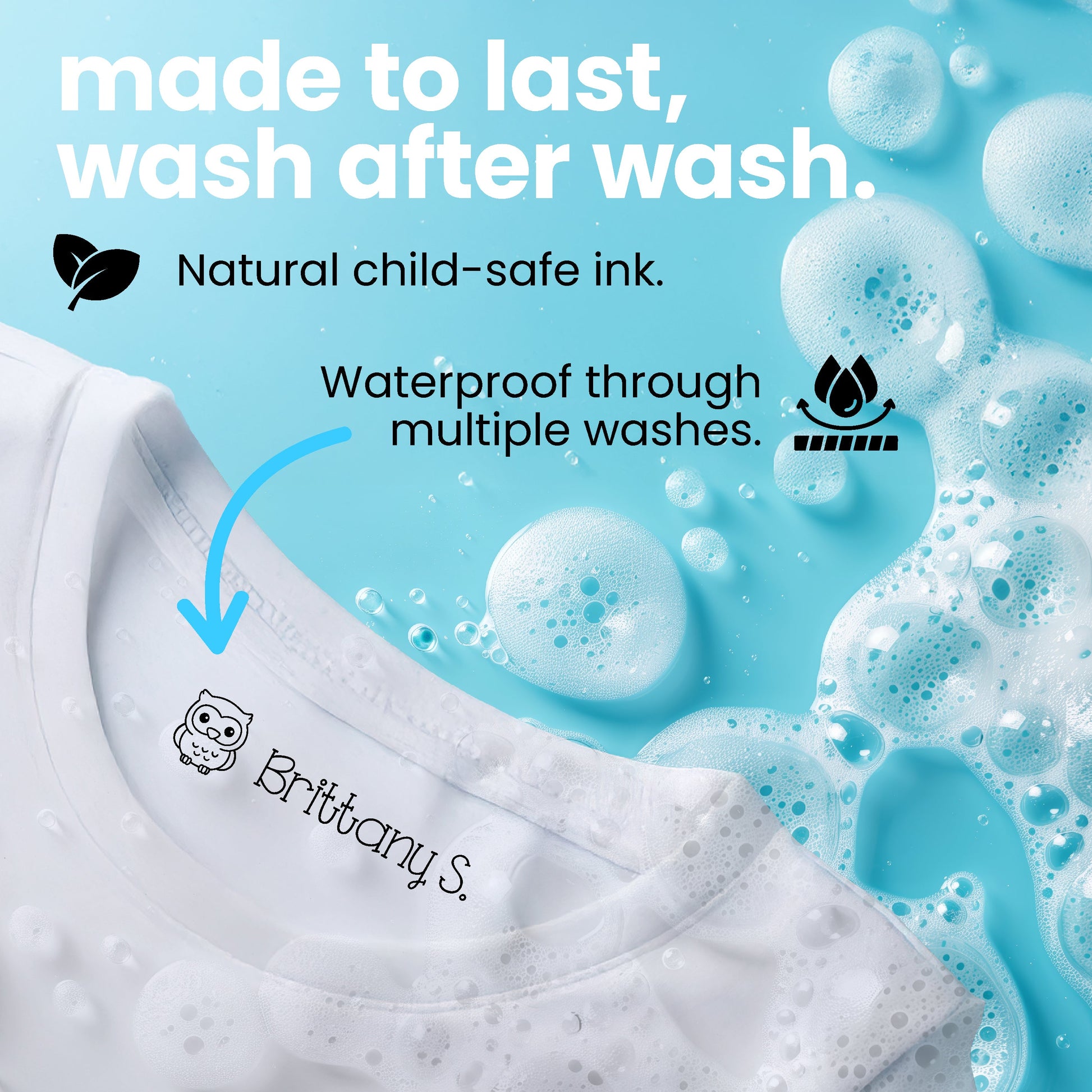 - WATERPROOF INK: The ink of our waterproof name stamp can withstand multiple wash cycles, ensuring that you won't need to reapply your stamp after every wash.
