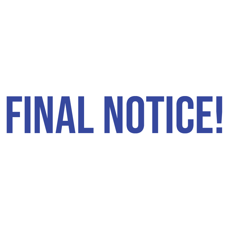 Ensure efficient communication and provide clear labeling with the use of this "FINAL NOTICE!" office stamp. A durable, yet lightweight, plastic construction provides long-lasting use.