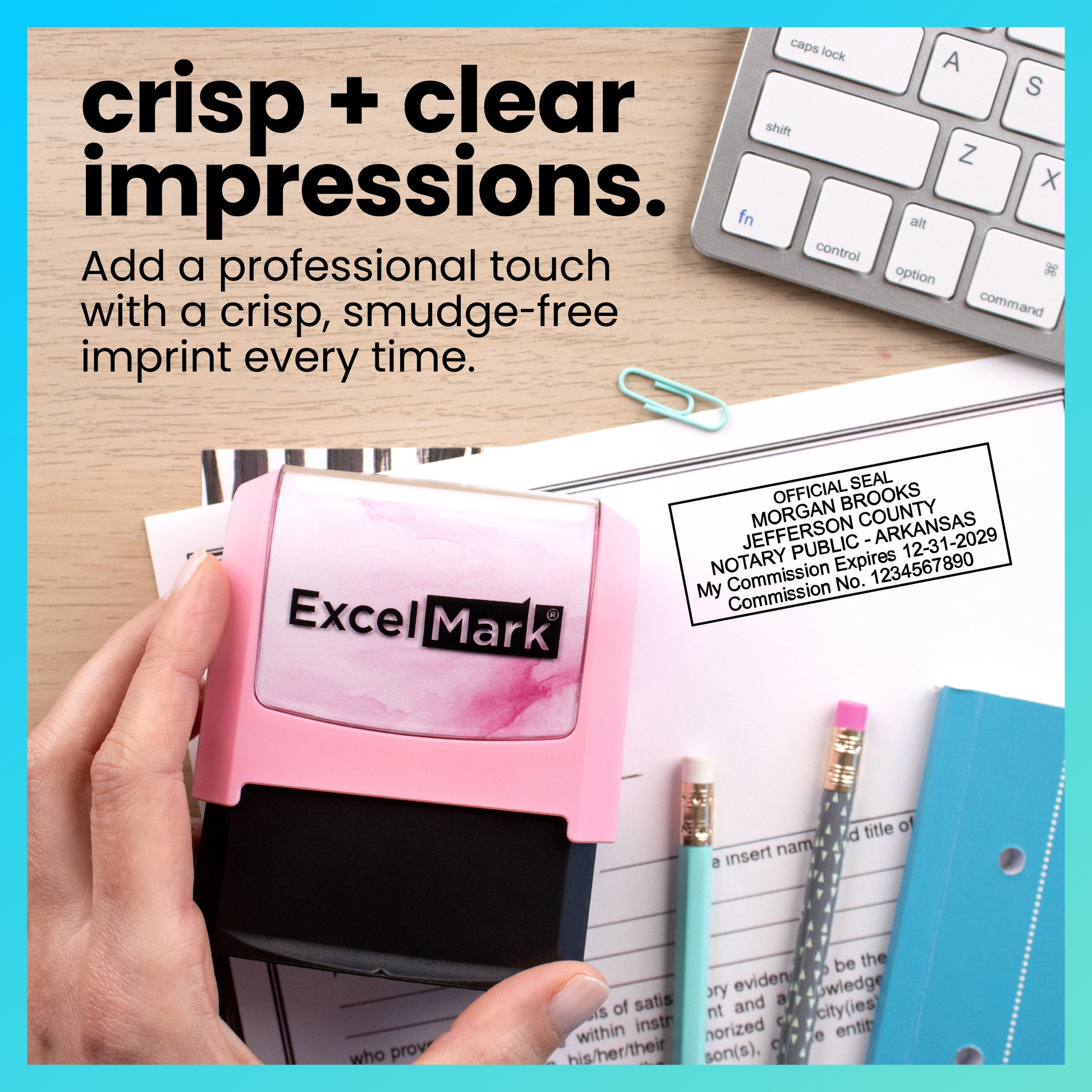 Add a splash of personality to your notarizations with our Pink Pre-Inked Notary Stamp! Proudly made in America, this high-quality stamp delivers crisp, clear impressions every time thanks to its pre-inked design. Choose from a variety of unique index designs to customize your stamp, making it as distinctive as you are. Perfect for notaries who want both reliability and a pop of fun in their professional toolkit.
