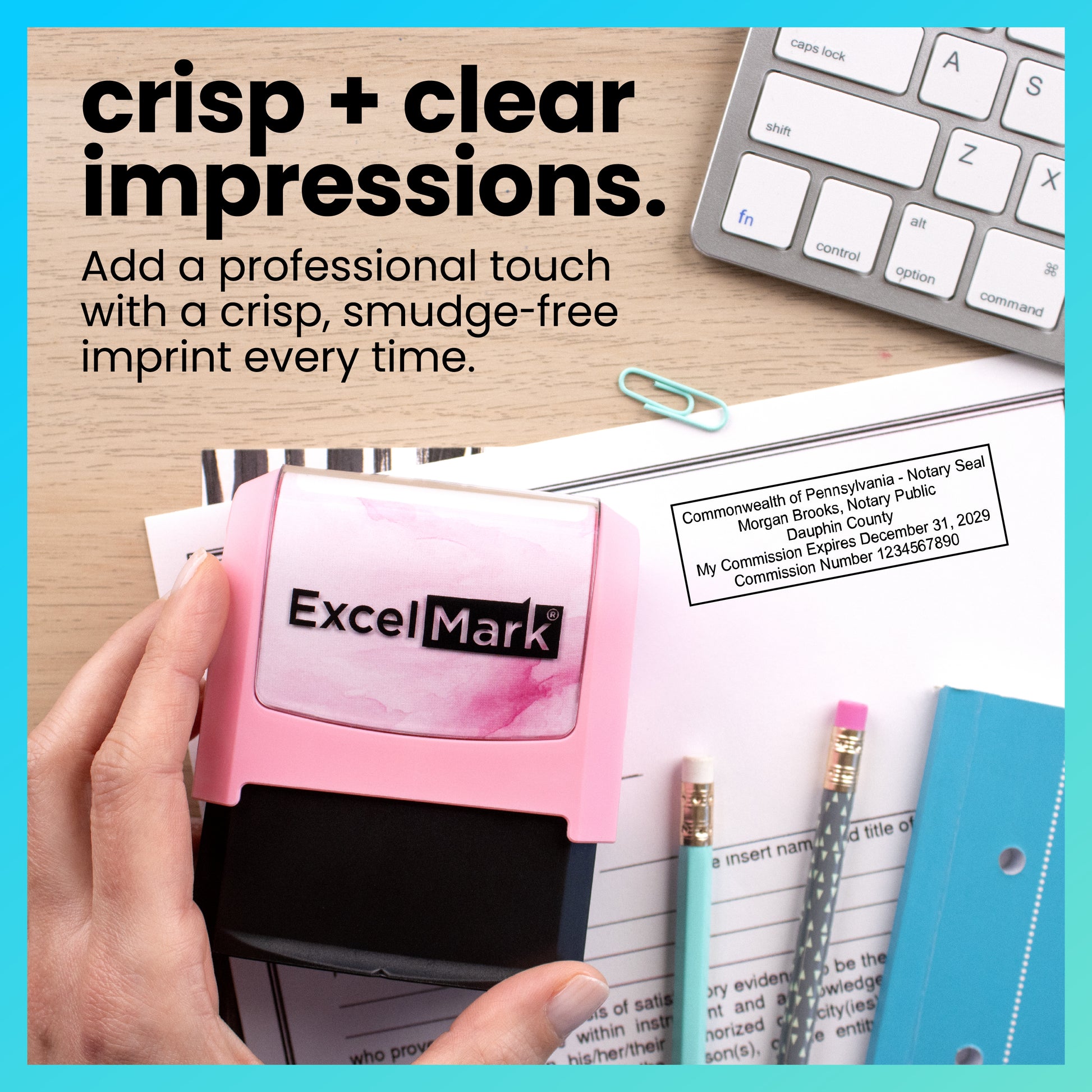 Add a splash of personality to your notarizations with our Pink Pre-Inked Notary Stamp! Proudly made in America, this high-quality stamp delivers crisp, clear impressions every time thanks to its pre-inked design. Choose from a variety of unique index designs to customize your stamp, making it as distinctive as you are. Perfect for notaries who want both reliability and a pop of fun in their professional toolkit.