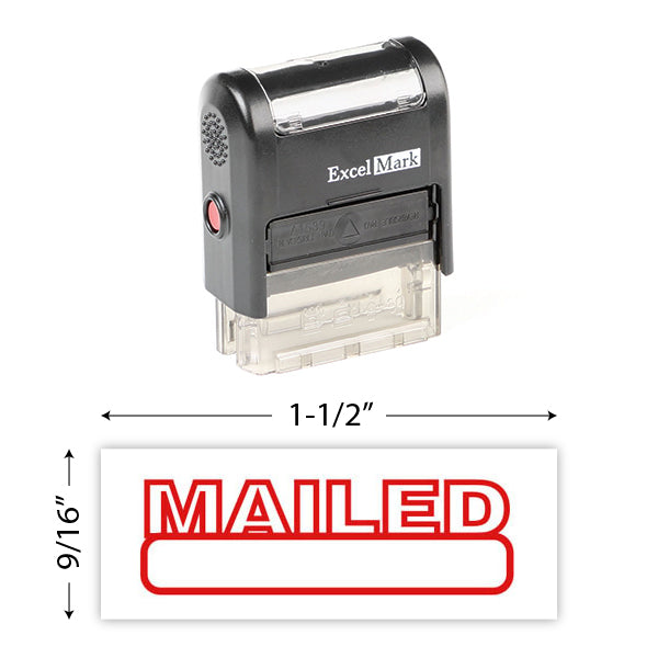 Ensure efficient communication and provide clear labeling with the use of this "MAILED" office stamp. This ExcelMark A-1539 stamp features a 9/16" by 1-1/2" rectangle impression area. A durable, yet lightweight, plastic construction provides long-lasting use. A self-inking mount re-inks the die before each impression, making it ideal for quick, repetitive stamping. In addition, a unique, reversible (two-sided) ink pad doubles the life of the pad. Simply push it out, flip it over, reinsert and keep stamping! Each side of your ExcelMark ink pad initially lasts for thousands of impressions and is simple to re-ink and replace. Choose from black, red, blue, green, purple or brown ink. A clear base on the mount allows you to always easily line up impressions. Stay organized with this ExcelMark Mailed Stamp today!